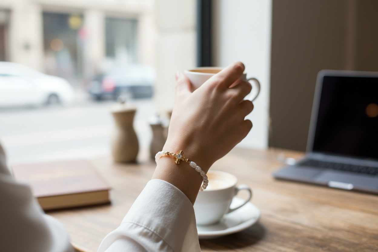 potatoe shaped freshwater pearls with Cz heart cross. Magnetic safety clasp